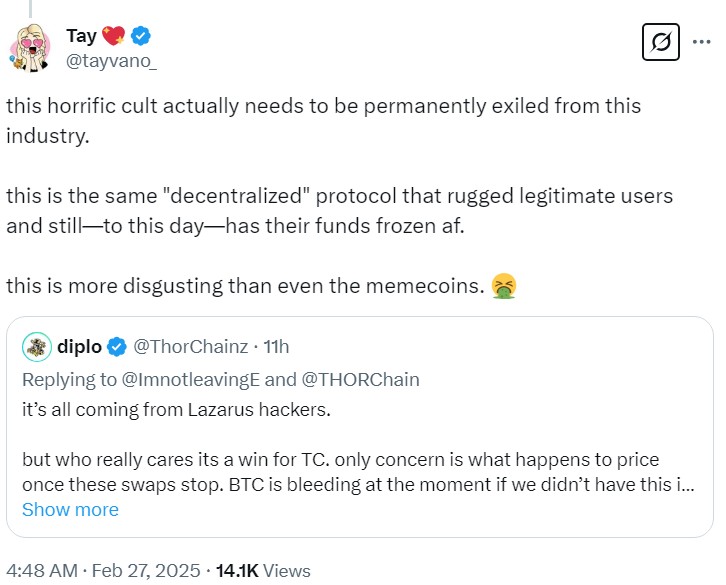 THORChain, a crosschain swap protocol, is experiencing a surge in activity following the $1.4 billion exploit of cryptocurrency exchange Bybit.