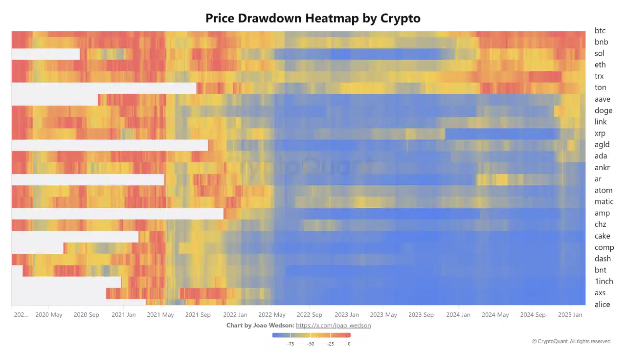 The Price Drawdown Heatmap shows that while many altcoins are deeply underwater, TON remains structurally stronger.
