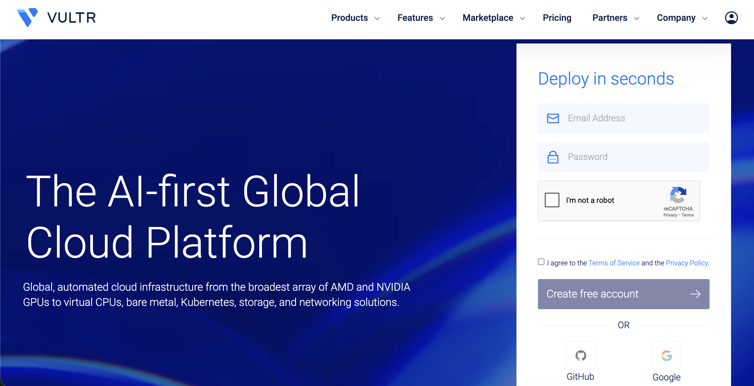 Vultr provides a broad global footprint with many cost tiers. It offers a variety of GPUs, from consumer cards to powerful H100 variants. Vultr is useful when you need to place inference endpoints closer to end users.
