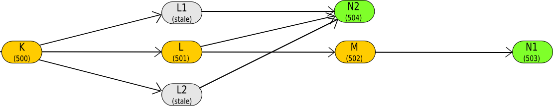 Specifically, suppose that the main chain has its last block M (score 502) with parent L (score 501) with parent K (score 500). Also suppose that K has two stale children, both of which were produced after M so there was no chance for them to be included in M as uncles. If you mine on M, you would produce a block with score 502 + 1 = 503 and reward 1, but if you mine on L you would be able to include K‘s children and get a block with score 501 + 1 + 2 = 504 and reward 1 + 0.0625 * 2 = 1.125.