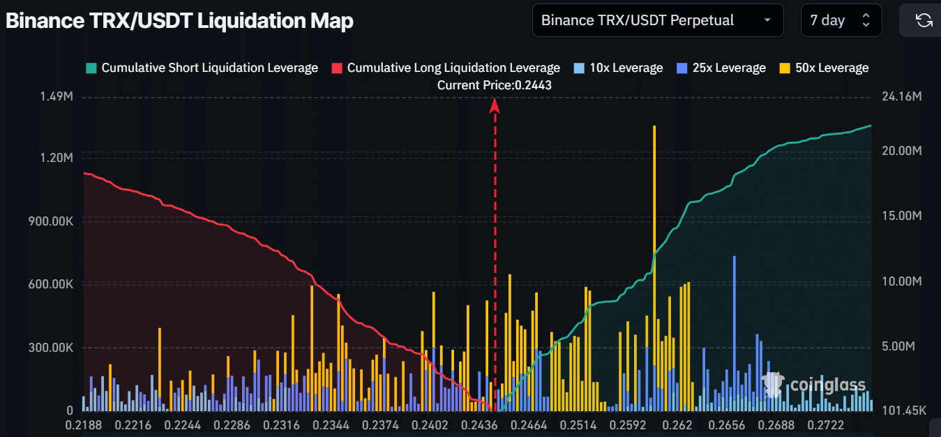 In case of a liquidity sweep, both sides of the price action could influence Tron’s moves.