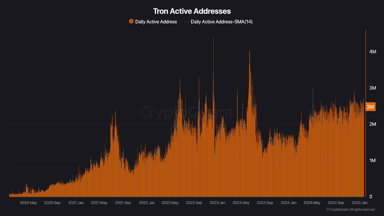 - Tron Crypto saw massive network activity growth in January 2025.