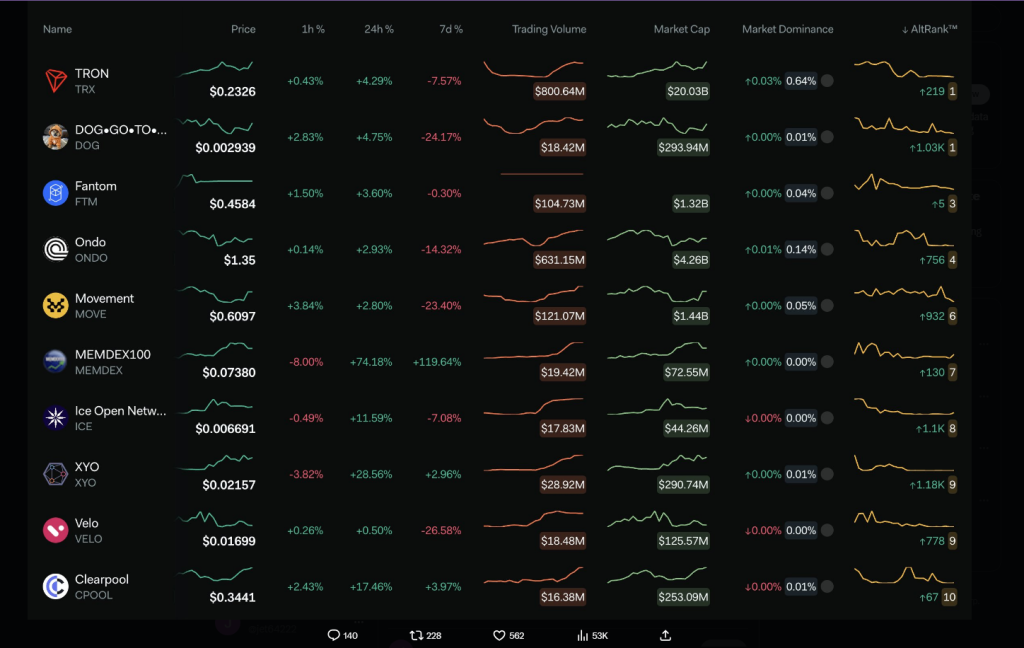 Top coins by LunarCrush AltRank™
