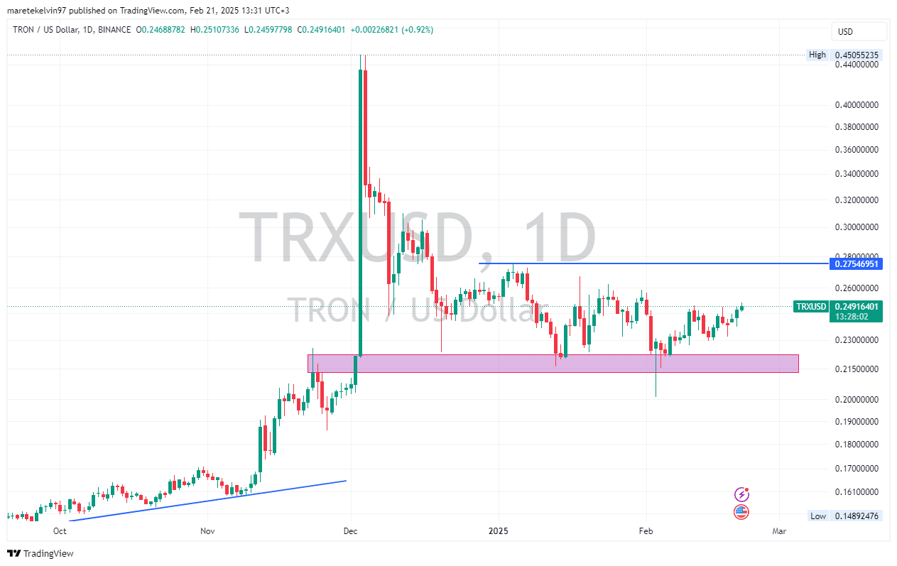 Technically, the $0.275 resistance level is the immediate barrier in line for TRX. If the bullish trend continues, a breach of this key level can open the doors for further rallies.