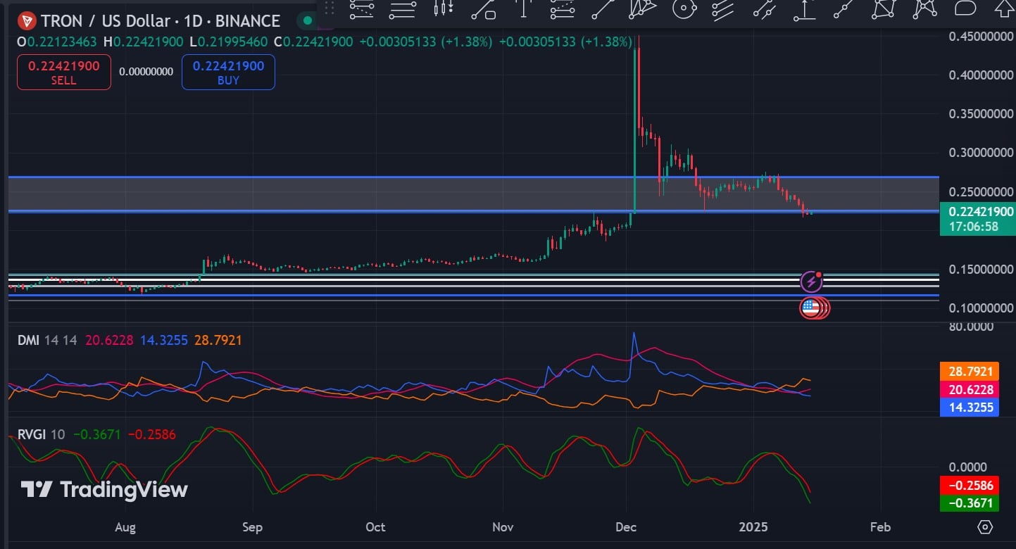 If these sentiments continue, TRX could dip to $0.20. However, if this trend ends and a reversal occurs, TRX needs to reclaim $0.25 to see sustained gains.