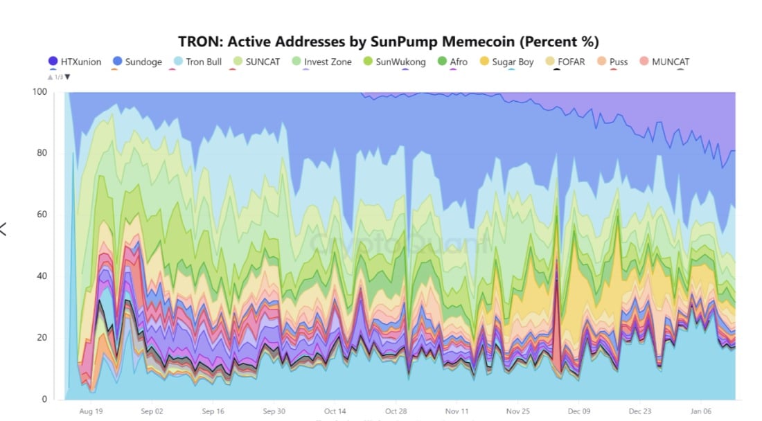 • Tron network saw growth as platforms like SunPump continued to expand.