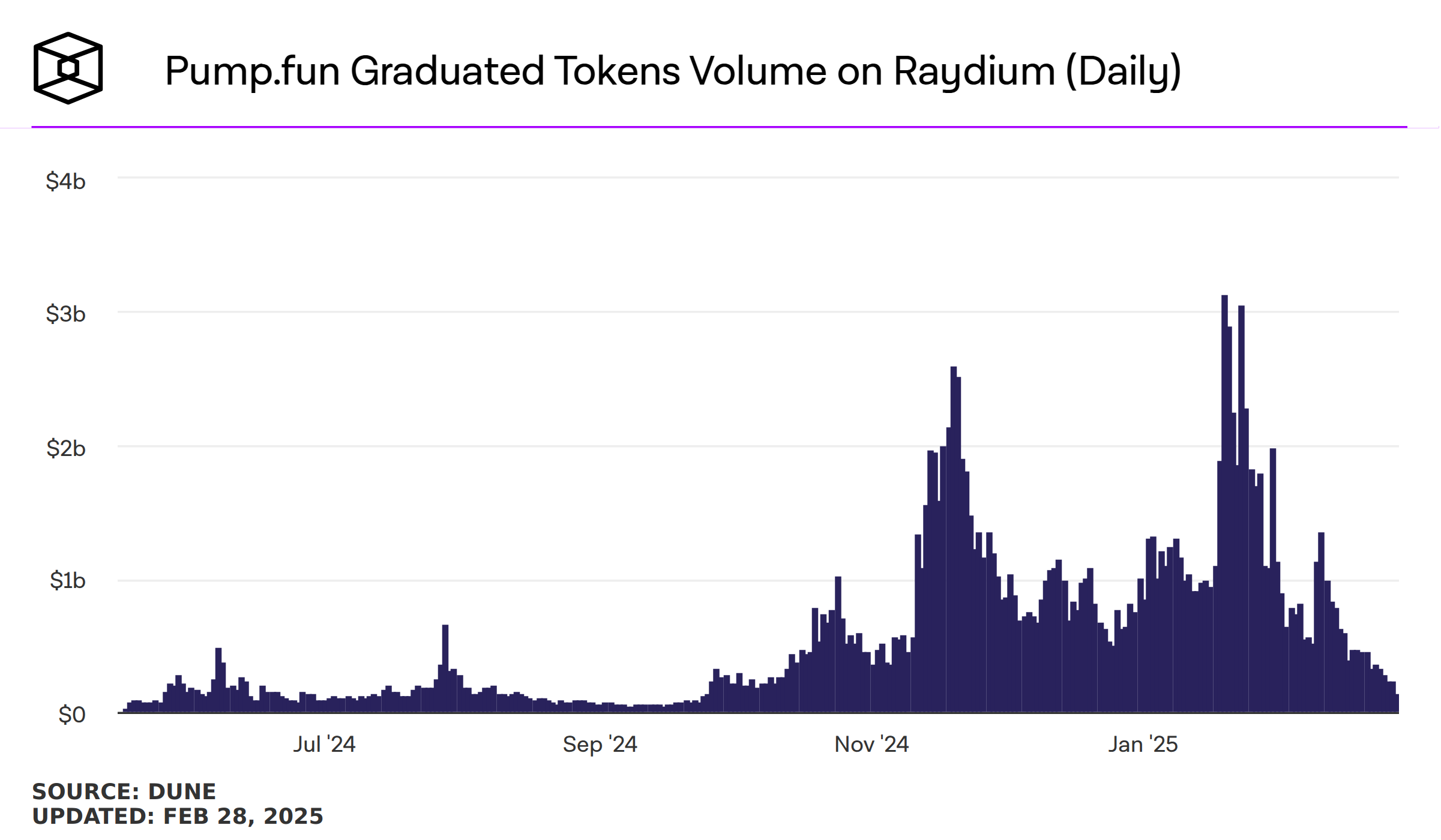 The memecoin trading has since cooled off, with Pumpfun tokens dropping from a record high of $3B in January to $144M as of press time.