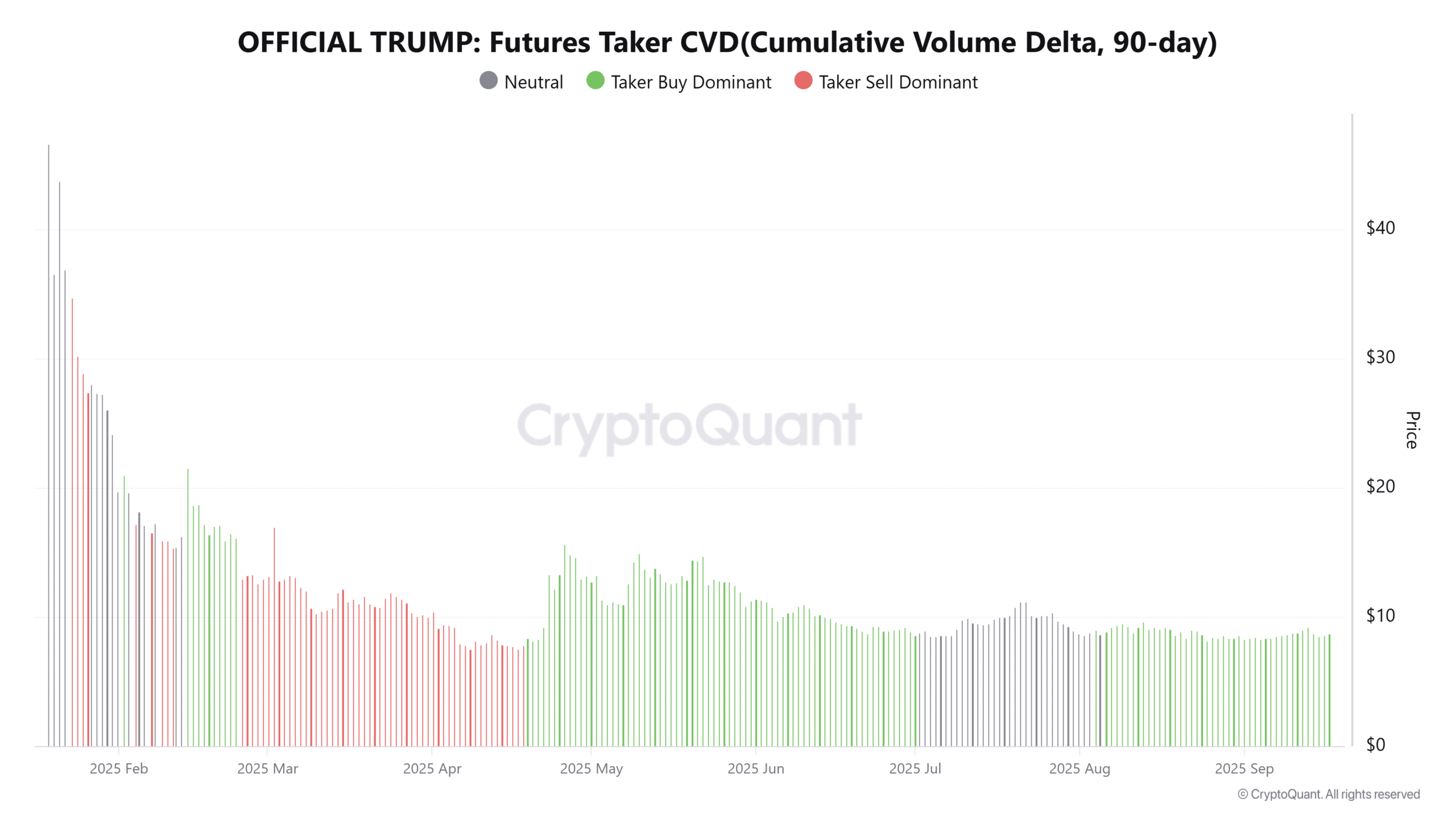 Taker buy dominance continues to reveal strong buy-side control in TRUMP markets. Aggressive market buys outweighed sells, signaling that traders stepped in with conviction.