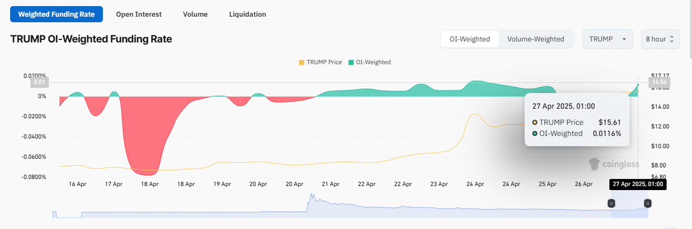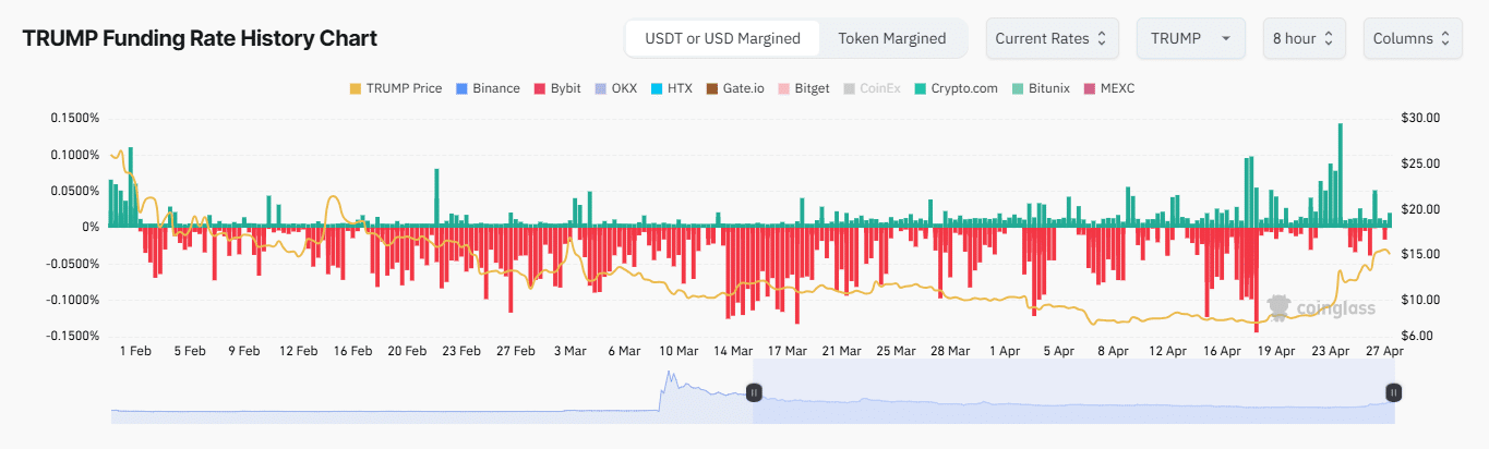 Previously, spot traders had sold approximately $27.63 million worth of TRUMP in 24 hours, stalling its earlier momentum.