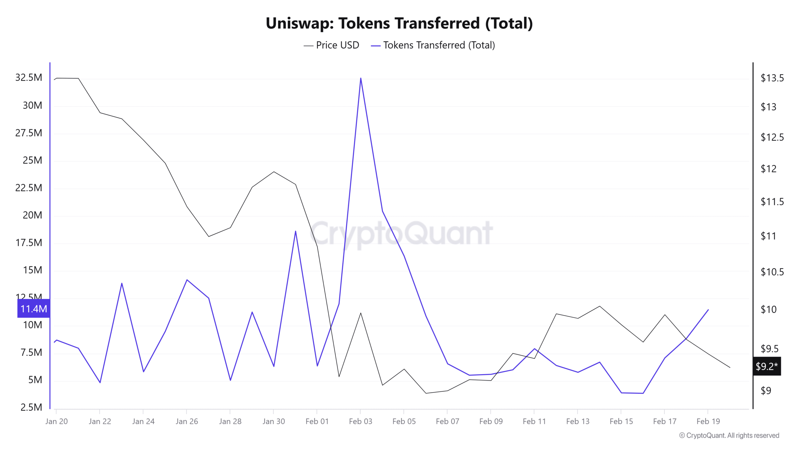 With whale activity on the rise and selling pressure easing off, the crypto community is full of anticipation. Could this support level act as a launchpad for UNI to regain $10 and above?