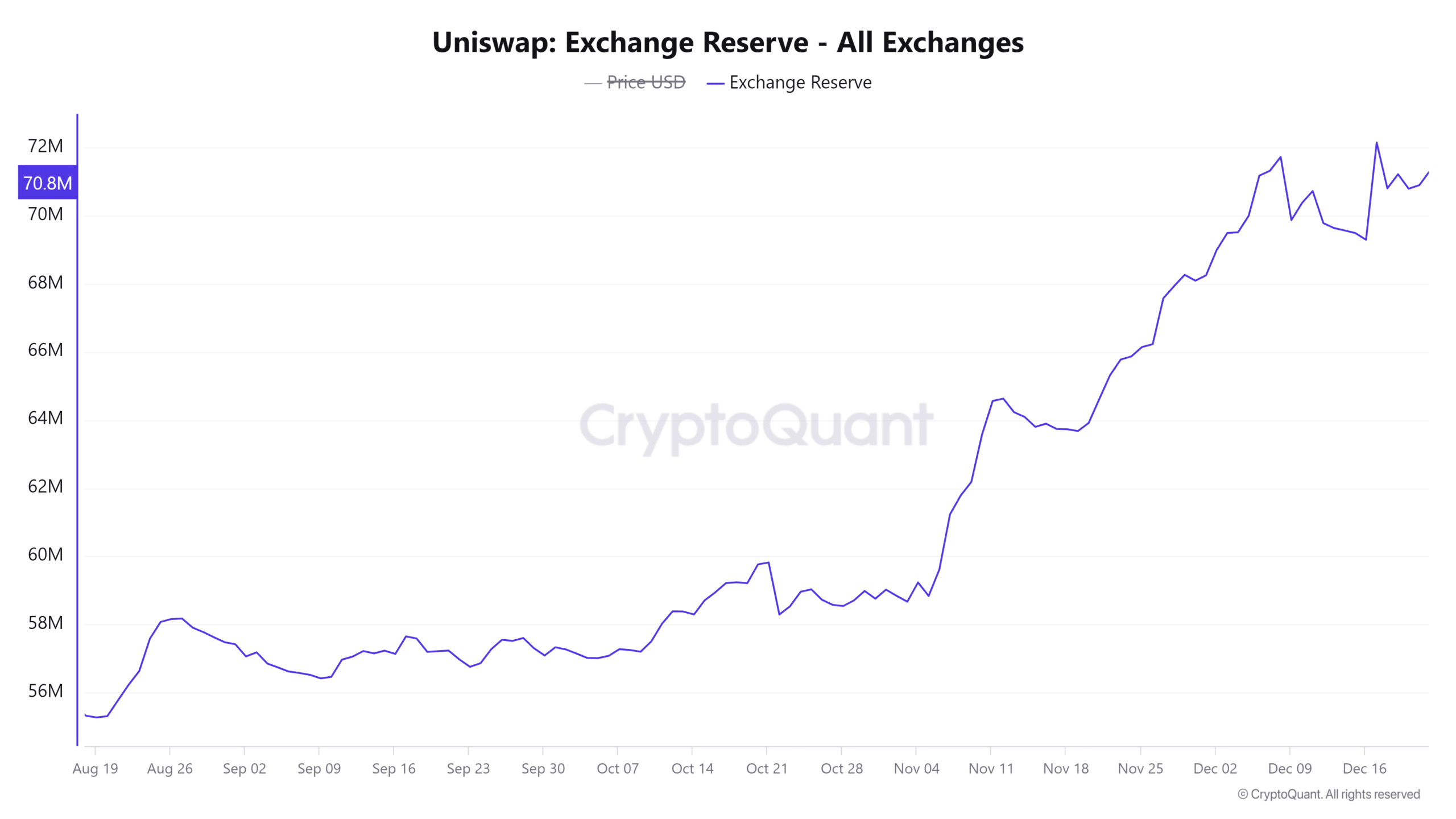 The exchange reserves saw a modest hike of 0.21%, bringing the total to 70.22 million tokens. While this could allude to slight selling pressure, the low rate of increase suggested that most holders have been maintaining their positions.