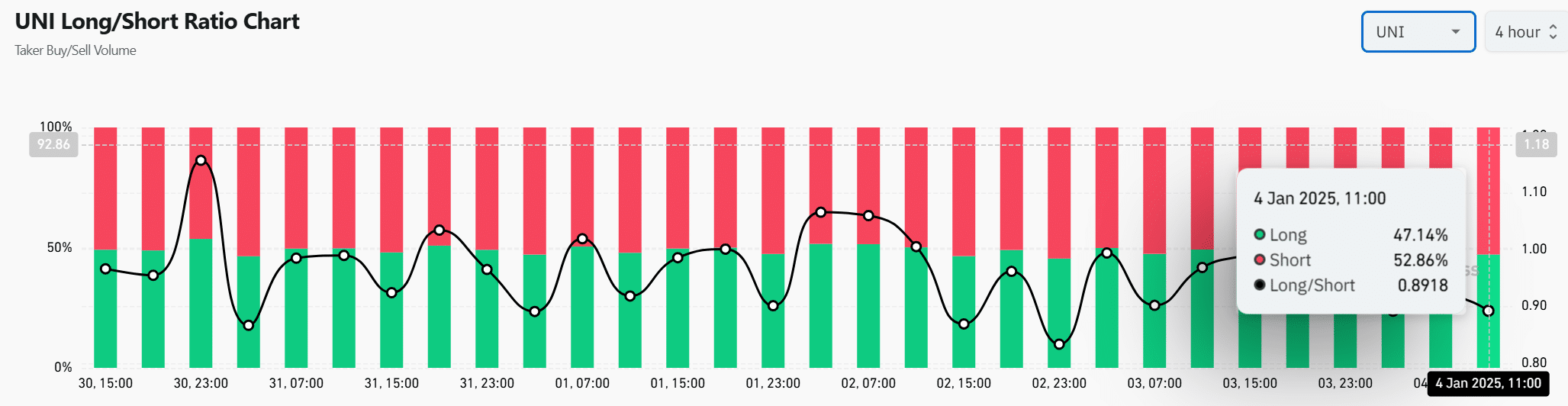 Finally, the long/short ratio indicated mixed sentiment, with 52.86% of traders shorting UNI and 47.14% holding long positions. However, this slight short bias could result in a short squeeze if bullish momentum accelerates.