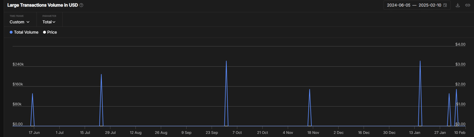 As highlighted by the blue spikes, another whale clip of nearly $150k was recorded on 5 February. This recent whale clip triggered the second leg of the rally. VEE pumped by 64% on the day alone and extended it to 160% by 10 February.