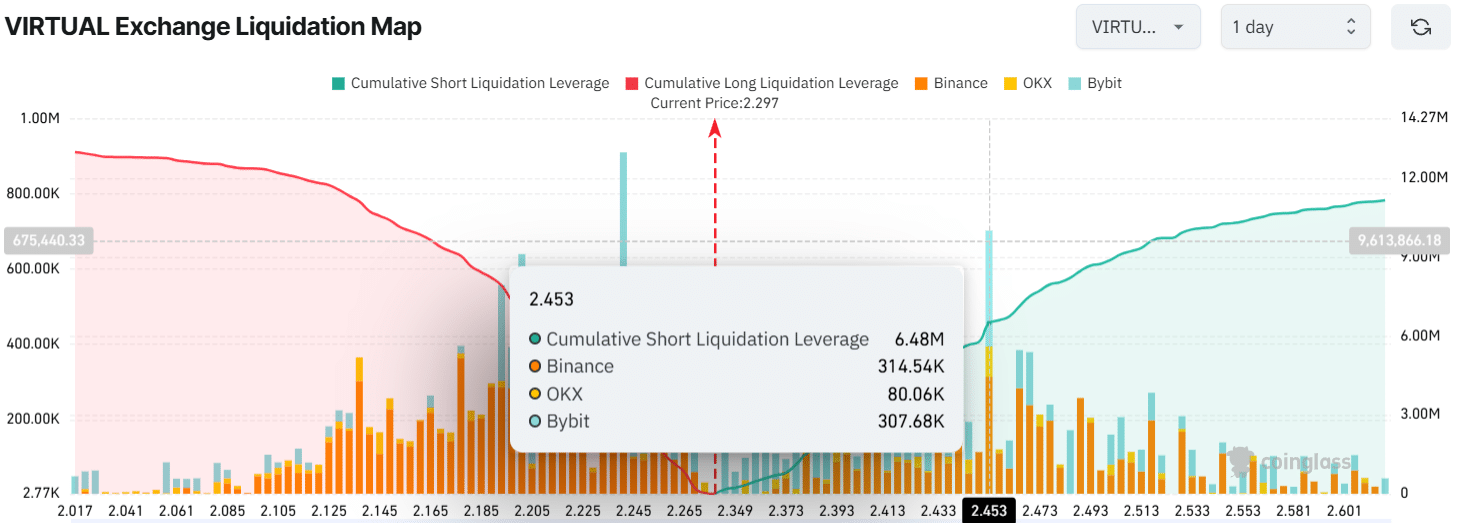 - At press time, VIRTUAL traders looked over-leveraged at $2.24 on the lower side and $2.45 on the upper side