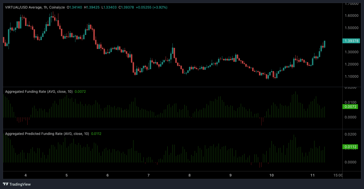 With bullish momentum in place, VIRTUAL could soon test the $1.50 resistance level if demand continues to rise.