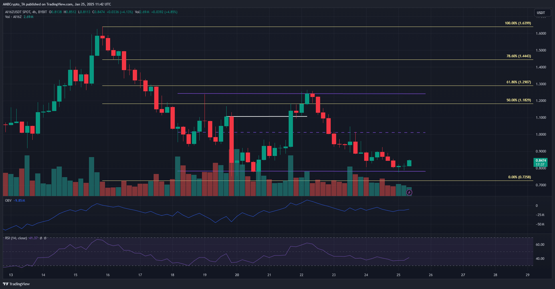 These levels were plotted based on the downward move the altcoin completed earlier this month. Instead of testing these levels, AI16Z faced rejection at the local high at $1.23 and slumped to the $0.8 support level once again.