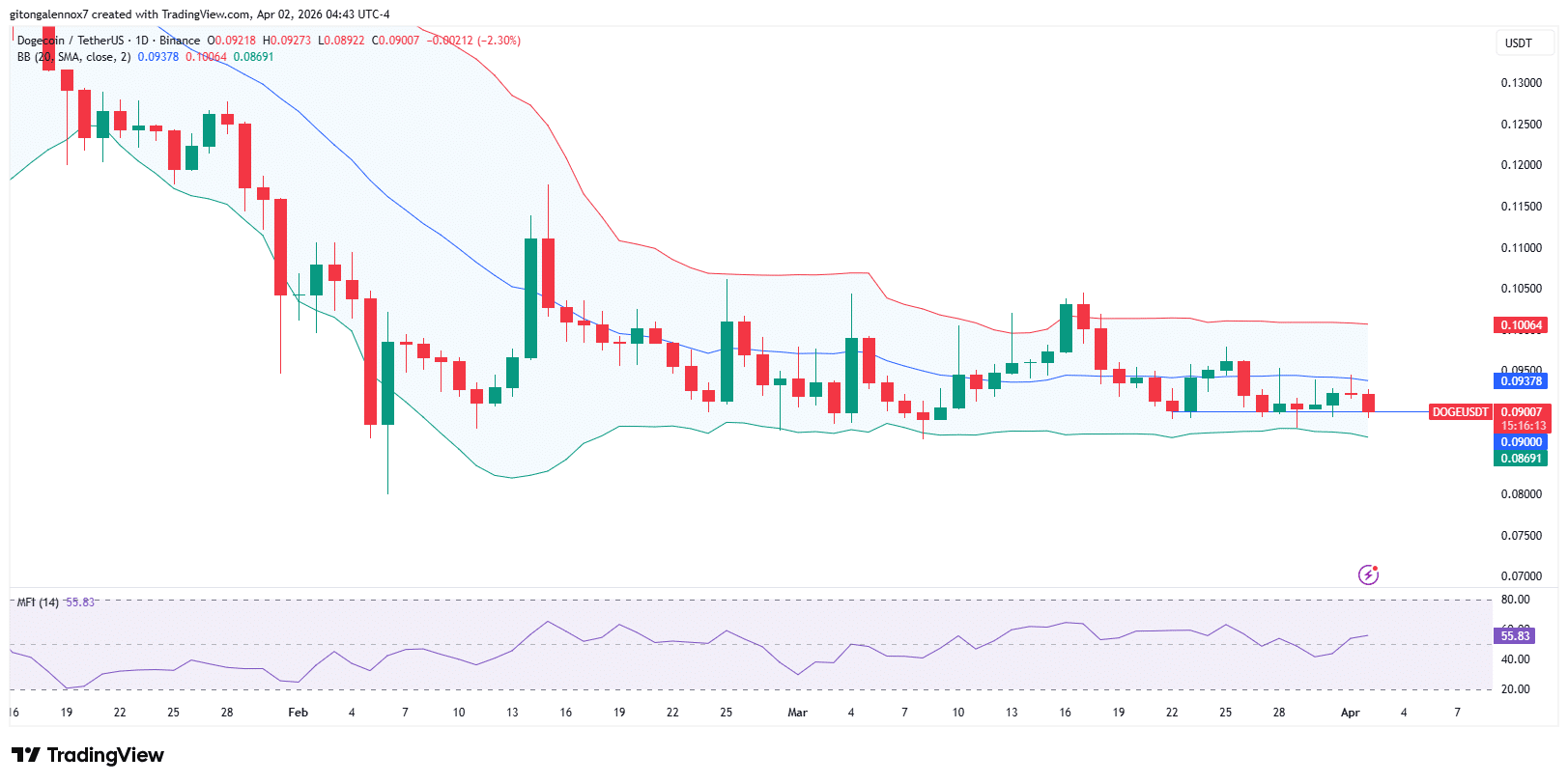 The Money Flow Index (MFI), at 55, confirmed that capital was flowing into the memecoin’s market. Meanwhile, DOGE has been defending $0.090 since mid-March, but losing the level would turn the structure bearish even in the short term.