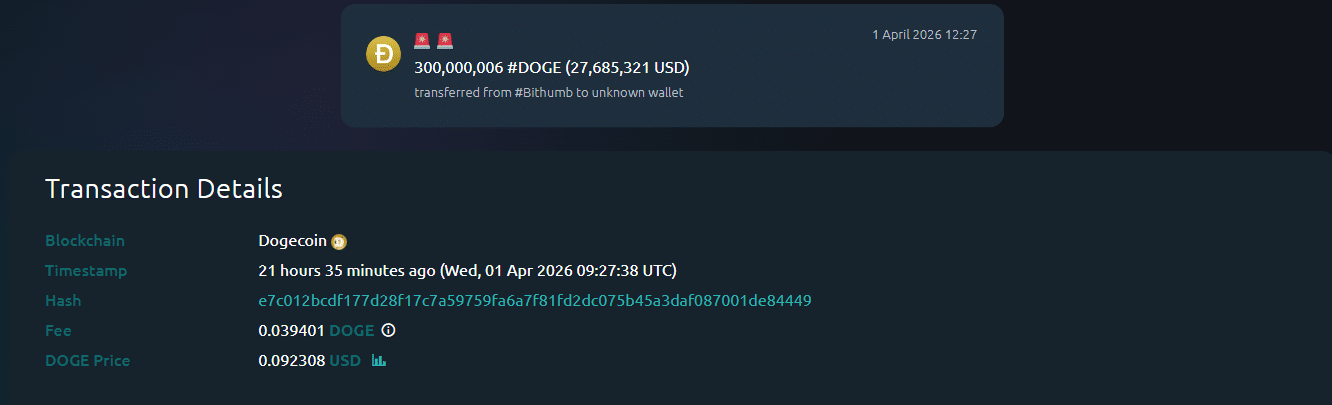 • About 900 million DOGE worth $83 million were withdrawn from the Bithumb exchange, signaling accumulation.