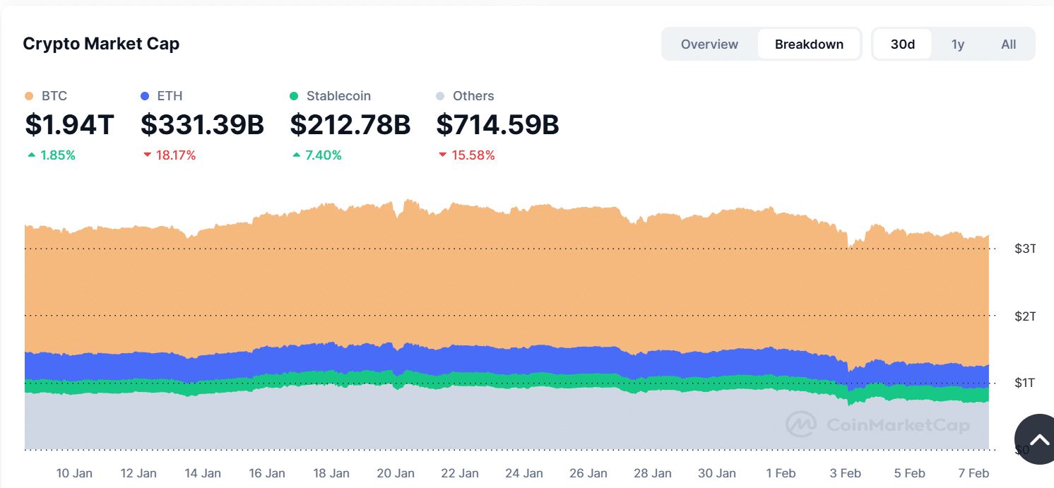 Stablecoins have seen an increase in capital inflows, rising by 7.40% – A sign that some investors are moving to lower-risk assets within the crypto space. However, Ethereum’s decline of over 18% and a 15.58% drop in other assets indicated that speculative interest in altcoins may be fading.
