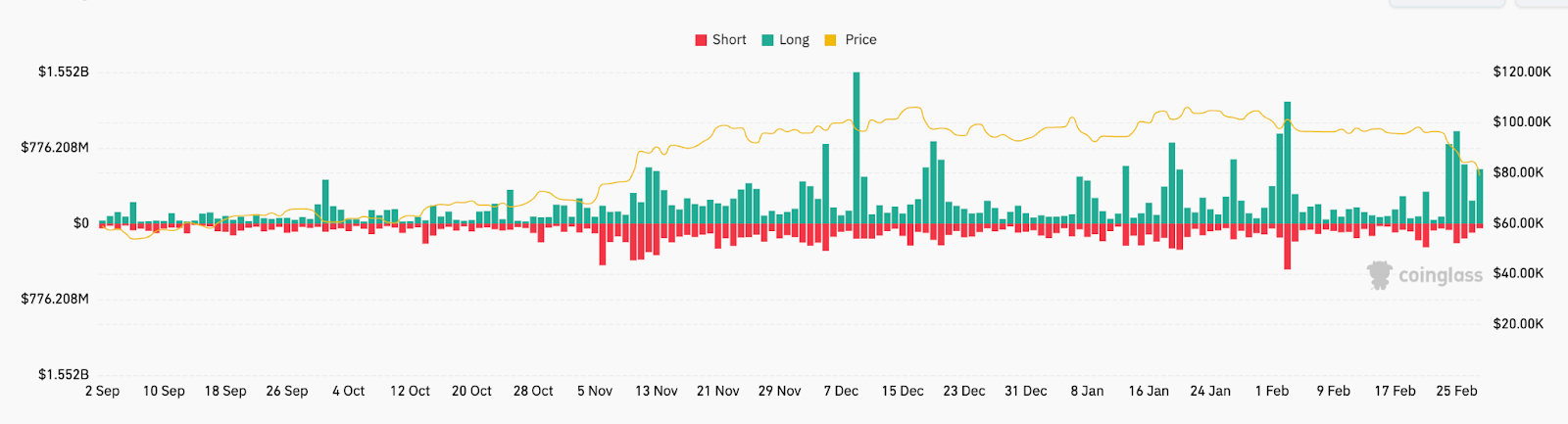 Total crypto liquidations. Source: CoinGlass