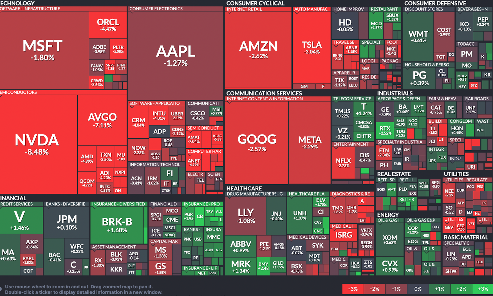 24-hour performance of US equities Source: Financial Visualizations