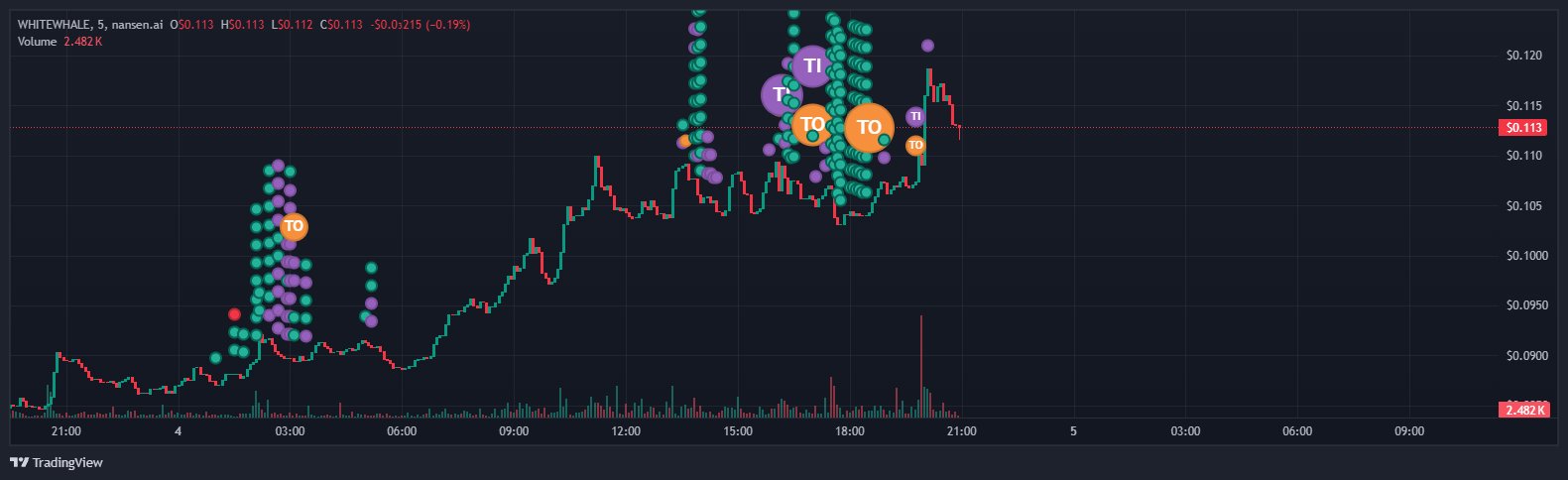 After WHITEWHALE dropped toward $0.08, dip buyers stepped in across the market. Whale wallets led that response.