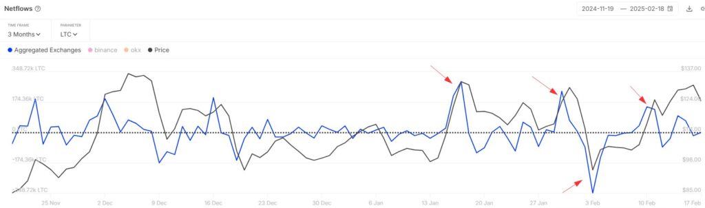 In a new post on X, the analytics firm IntoTheBlock has discussed about a pattern that the Litecoin Exchange Netflow has shown during the recent phase of consolidation in the asset’s price.