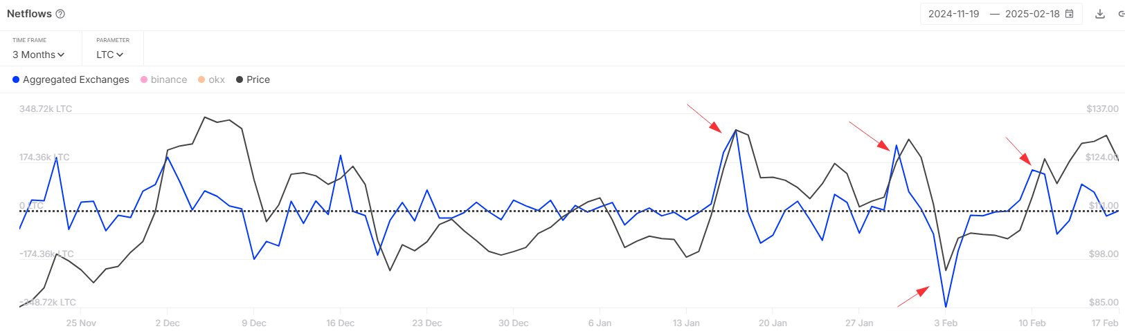 Now, here is the chart shared by IntoTheBlock, which shows the trend in the Litecoin Exchange Netflow over the last few months: