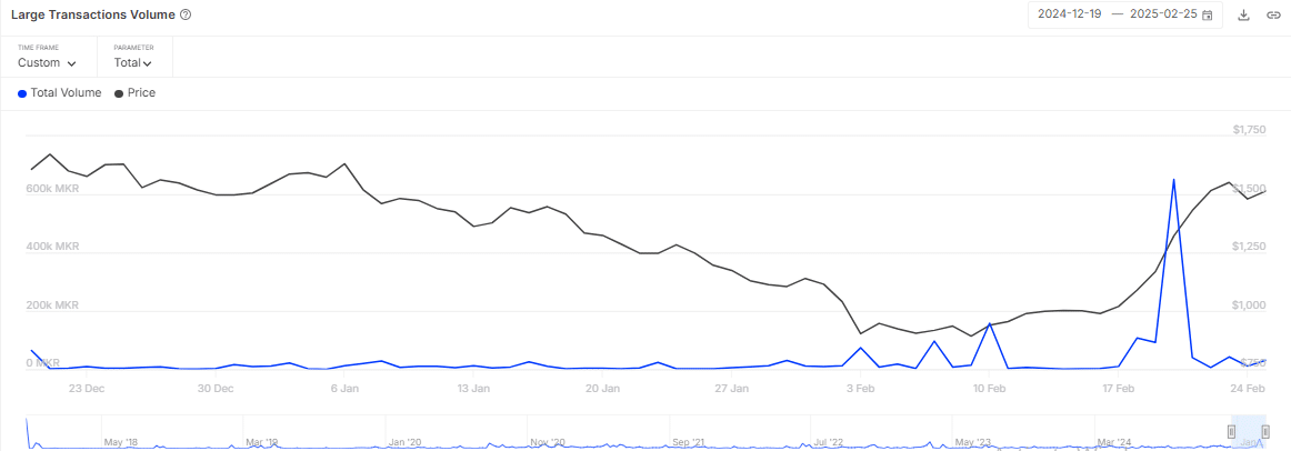 Maker [MKR] has displayed significant strength in the market despite the downturn in the broader crypto market. In the past 24 hours, it rallied by 23% to approximately $1,727.