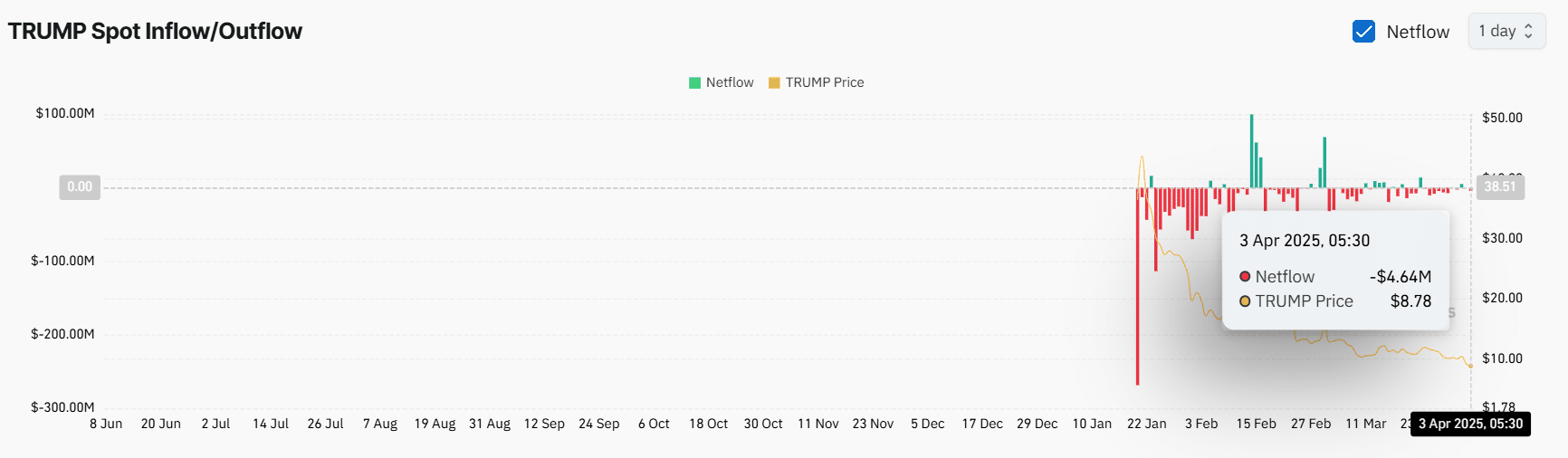 - On-chain metrics suggested that exchanges recorded outflows of over $4.65 million in TRUMP