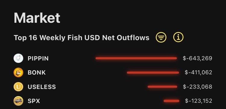 According to Sun Flow data, PIPPIN and BONK led with $643K and $411K, respectively. This showed a market-wide capital rotation from memecoins to safer assets that were also at a discount. Whale exits could derail the current breakout.