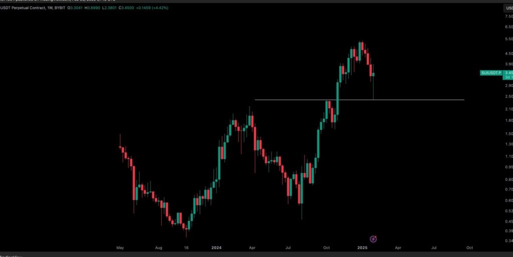 As of press time, the SUI price is at $3.31, marking a daily dip of 4.99%. Over the past week and month, the token has experienced huge declines of 22.9% and 33.9%, respectively.