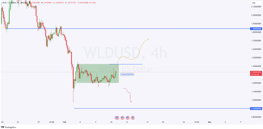 The outcome depends on whether WLD can break above $1.34 or face further downside pressure.