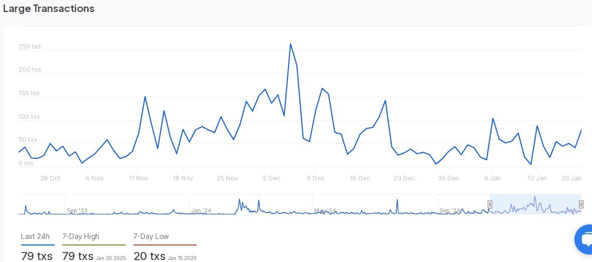 Over the past week, transactions have stabilized, with a seven-day low of 20 transactions on the 15th of January preceding a seven-day high of 79 transactions recorded on the 20th of January.