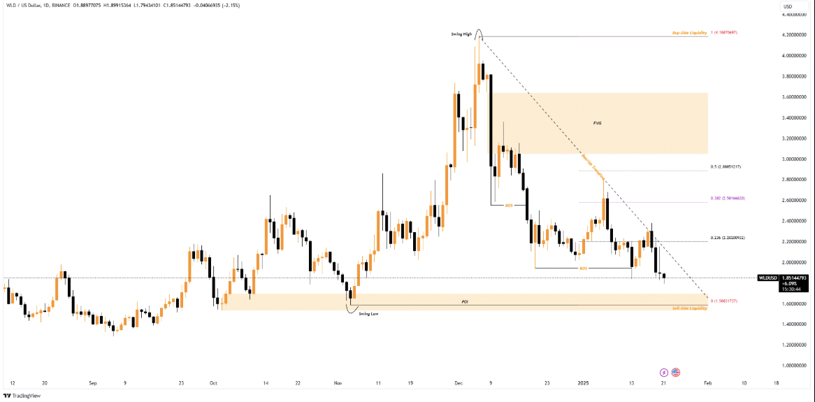 Key levels to watch in Worldcoin’s downtrend
