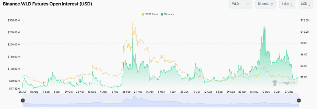 Finally, an analysis into the Open interest of WLD Futures on Binance revealed a hike over recent weeks. Here, Open Interest represents the total number of outstanding futures contracts and can serve as an indicator of growing market interest.