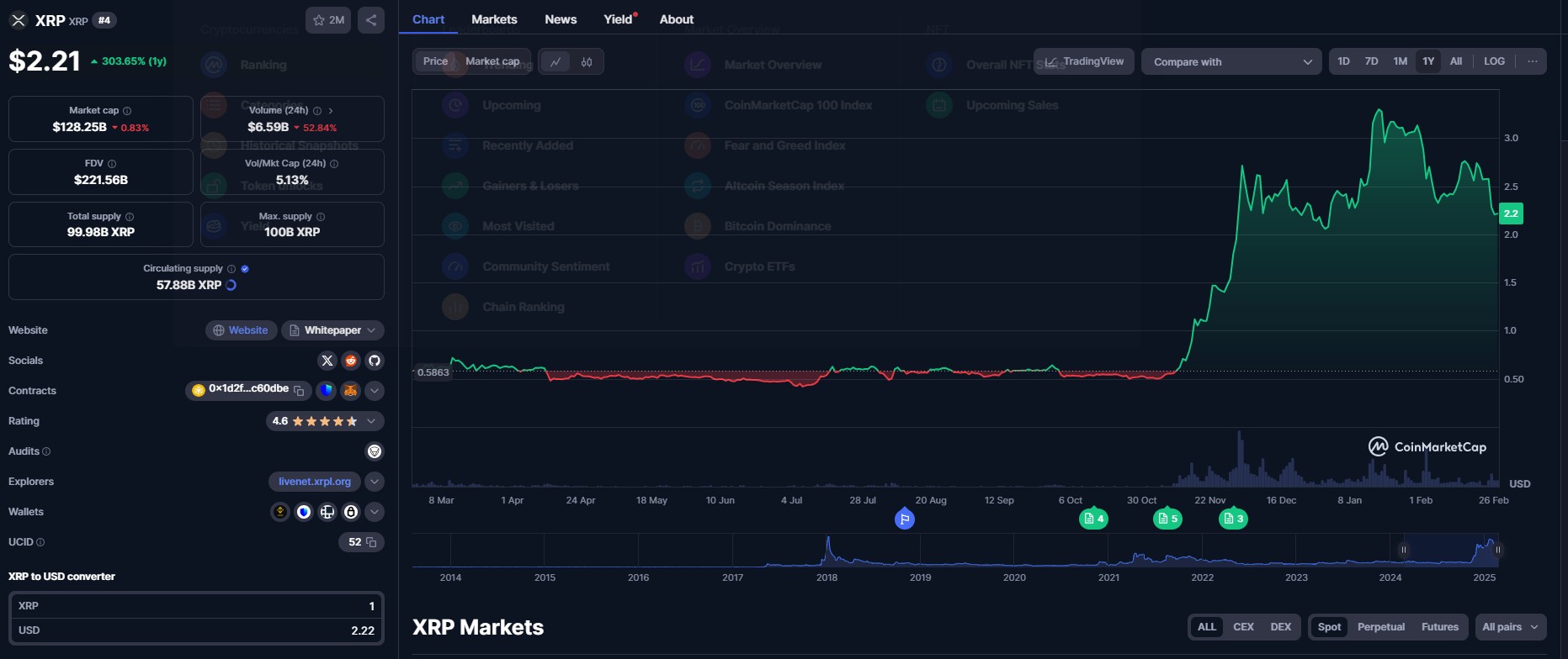 As of Feb. 26, XRP’s market capitalization stands at approximately $128 billion, according to CoinMarketCap.