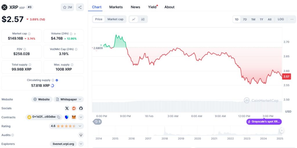 XRP has seen a significant surge in open interest, climbing to $4.7 billion amid a price rally that pushed the token above $2.55.