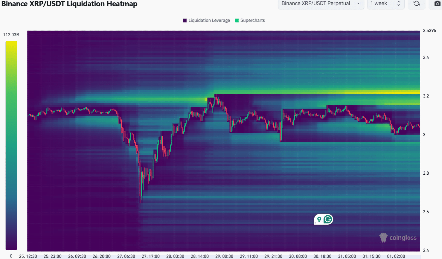 The past week’s liquidation heatmap outlined $3.2 as a short-term bullish target. A retest of the $2.95 demand zone would be a buy signal for XRP traders, targeting $3.2.