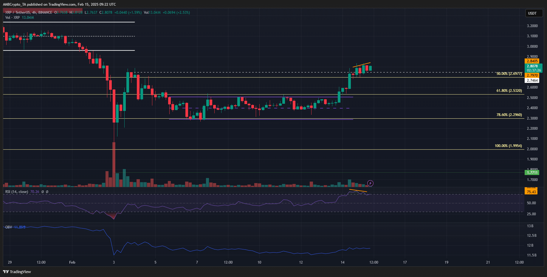 That rebound has since occurred, and the question now is – Can XRP go even higher? The rebound came after a retest of the 78.6% Fibonacci retracement level, where a range formation was seen.