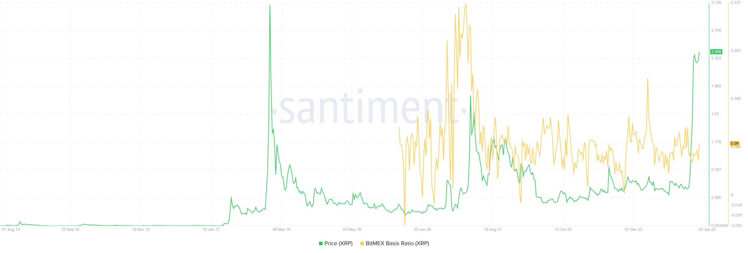 Finally, XRP’s investors have been bullish, as evidenced by a positive Bitmex basis ratio. When the basis ratio is positive, it means that there’s a high demand for long positions as investors are bullish and bet on the price to rise.