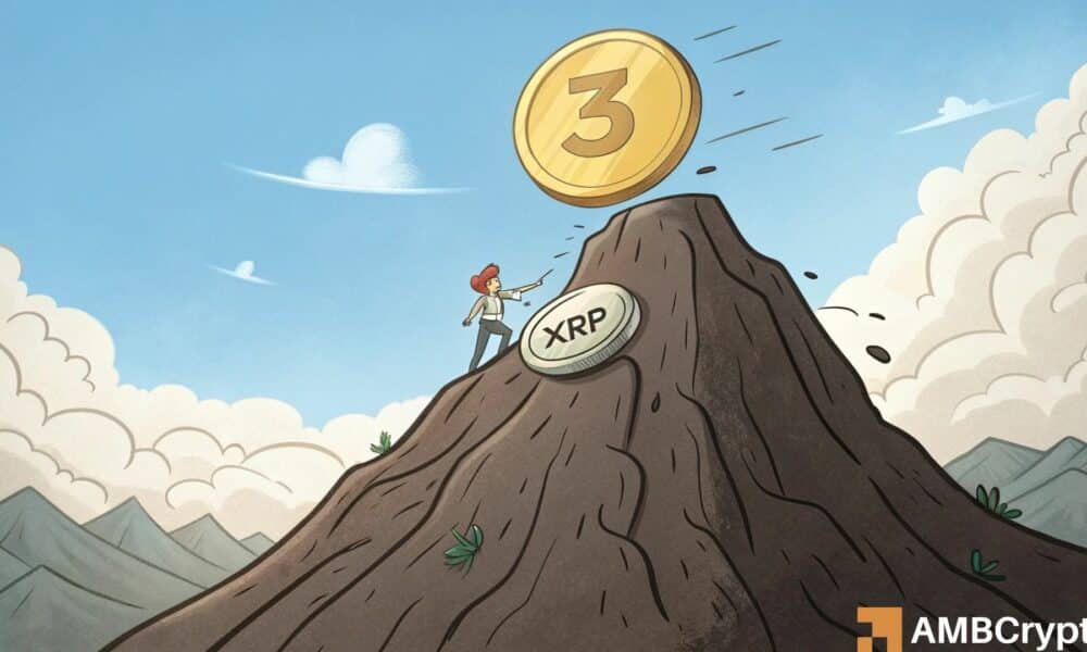 • Bitcoin’s rejection at $99,500 and trade tariff uncertainties influenced XRP’s attempt to reach $3.