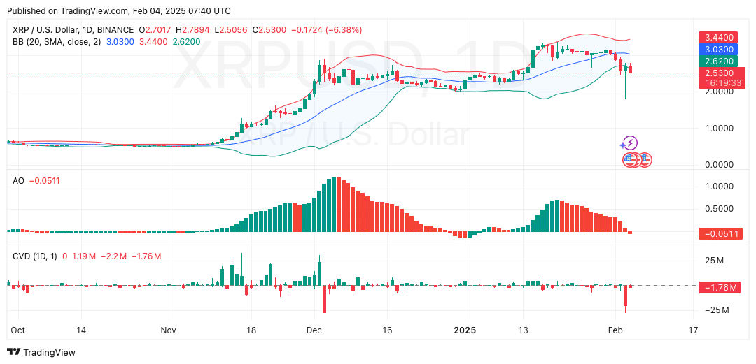 A further decline could push XRP toward $2.00, a critical support level to monitor.