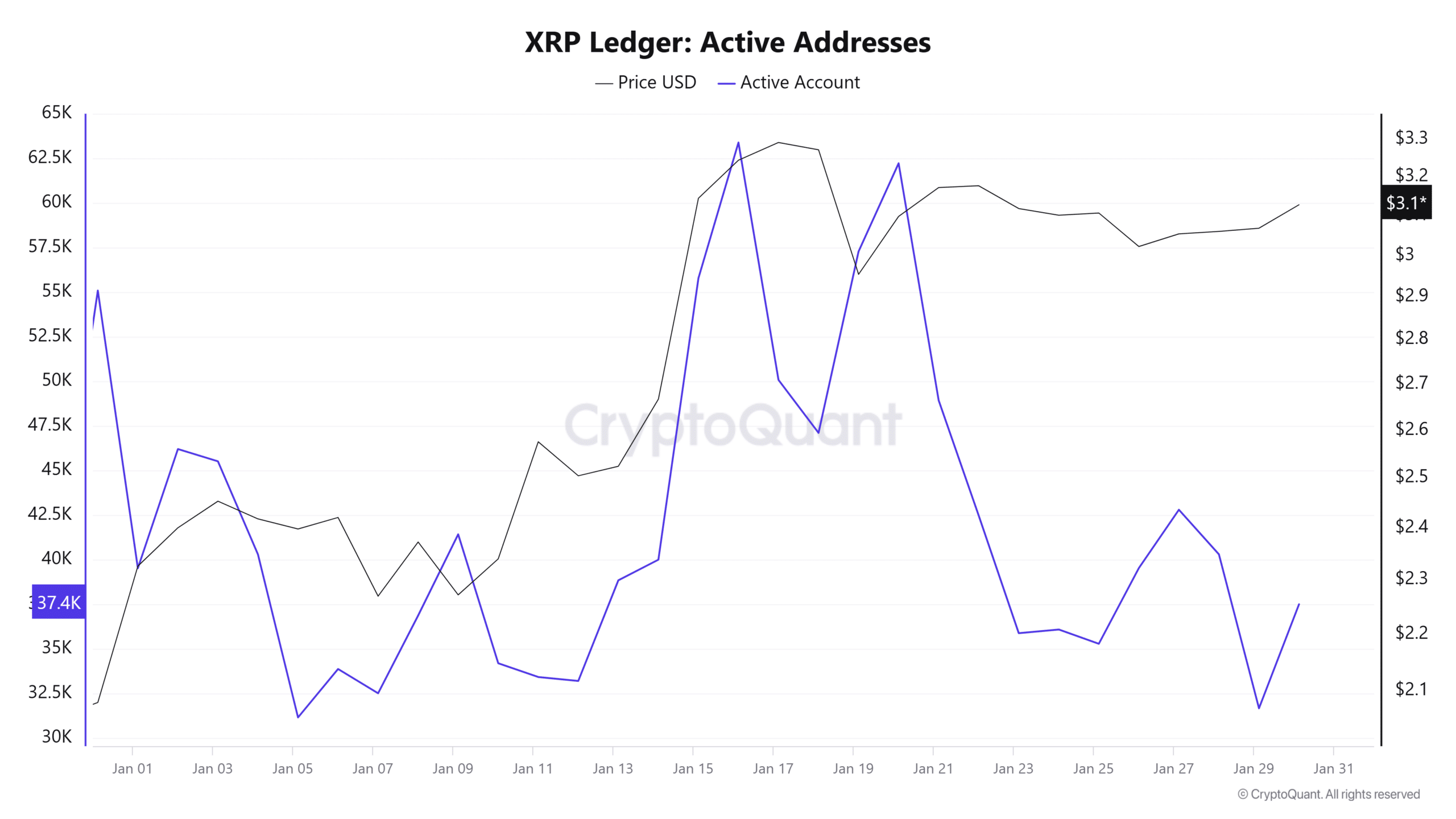 This fall can be further validated by a sharp decline in XRP’s active addresses. For instance – The number of active participants declined from 63.3k to 37k over the past month.