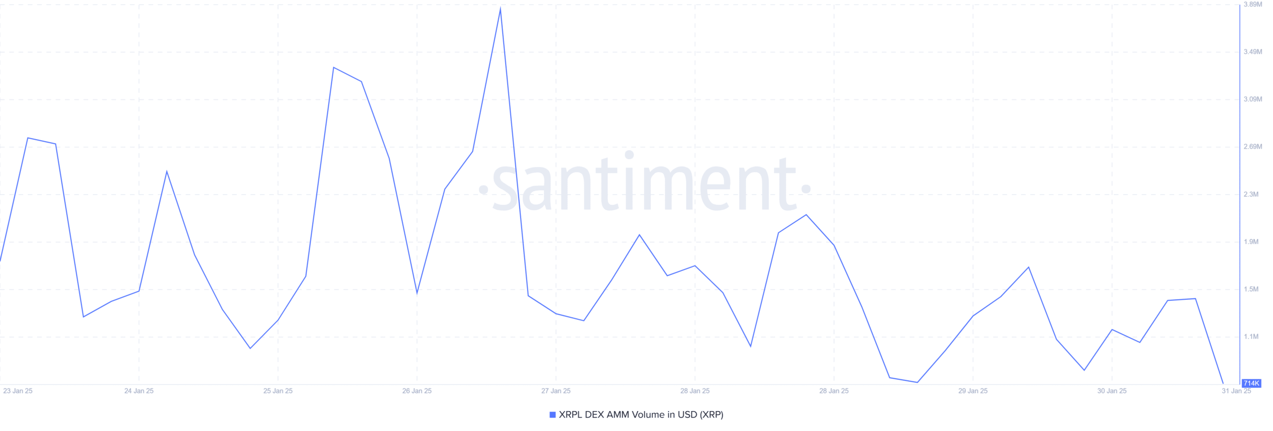 For instance, XRPL DEX AMM volume declined from 3.85 million to 639.9k.